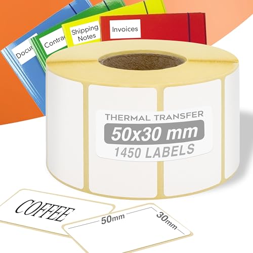 GIANTO 1 rulle med självhäftande etiketter, 50 x 30 mm, kärna inre diameter 40 mm, för Zebra-kompatibla universella termiska skrivare, Citizen för kontor, termisk och direkt överföring utskrift