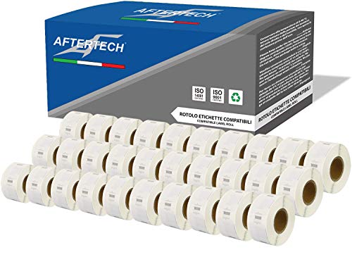 Aftertech 30x 11353 12x24mm Kompatibel självhäftande etiketter rullar (1000 Etiketter/rulle = 30000 totalt) för Dymo LabelWriter Seiko SLP märkningsmaskiner skrivare S0722530 30x11353