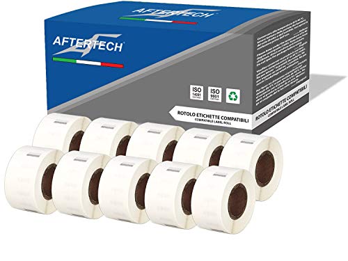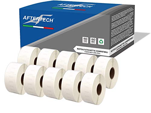 Aftertech 10x 11353 12x24mm Kompatibla självhäftande etiketter rullar (1000 Etiketter/rulle = 10000 totalt) för Dymo LabelWriter Seiko SLP märkningsmaskiner skrivare S0722530 10x11353