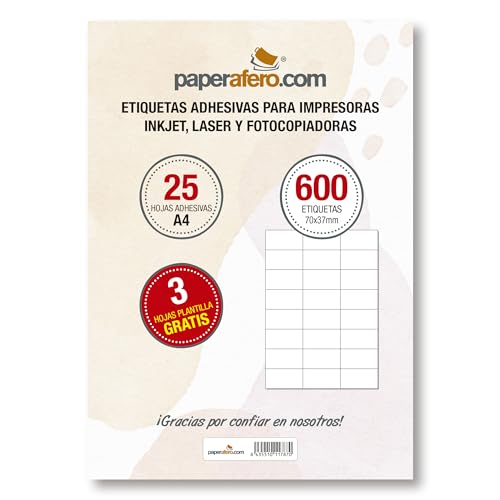 Självhäftande pappersetiketter | 600 etiketter, storlek 70 x 37 mm, | självhäftande papper för utskrift på alla skrivare, perfekta självhäftande vita klistermärken för hemmabruk och yrkesmässig