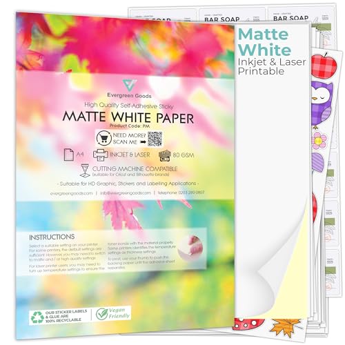100 Ark A4-Etiketter Självhäftande Utskrivbara | Papper för Skrivare, Bläckstråleskrivare och Laser | Starkt Klistermärken för Självutskrift