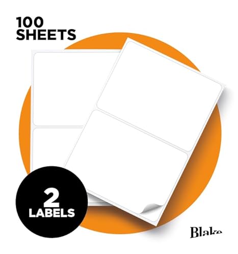 Blake Purely Labels, 2 per A4-ark, förpackning med 100 ark, totalt 200 tum, självhäftande etiketter med vanlig adress, lämplig för digitala skrivare 199,6 x 143,5 mm