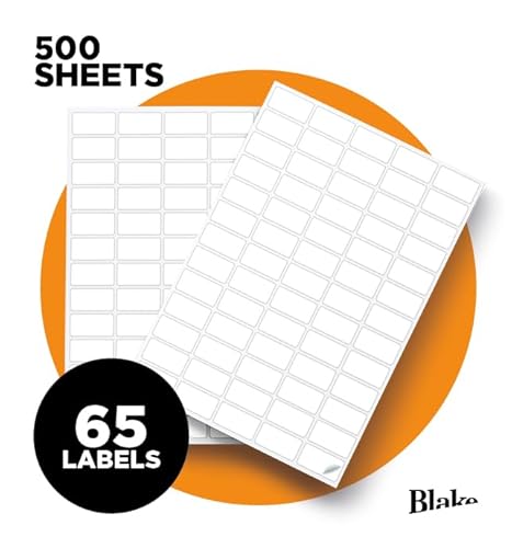Blake Purely Labels, 65 per A4-ark, förpackning med 500 ark, 82,5 cm totalt, självhäftande etiketter för vanliga adressskrivaretiketter, lämplig för digitala skrivare 38,1 x 22,2 mm