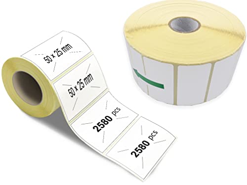 Amazinnov - Självhäftande etiketter, 1 x rulle 50 x 25 mm, 2580 st per rulle universella självhäftande termiska överföringsetiketter vita för utskrift i termiska skrivare | 5×2,5 cm