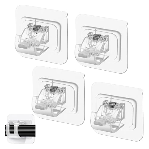 Fleymu 4-pack självhäftande gardinstång utan borrning, transparent plastnagelfri gardinhållare för badrum kök vardagsrum med stark självhäftande kraft