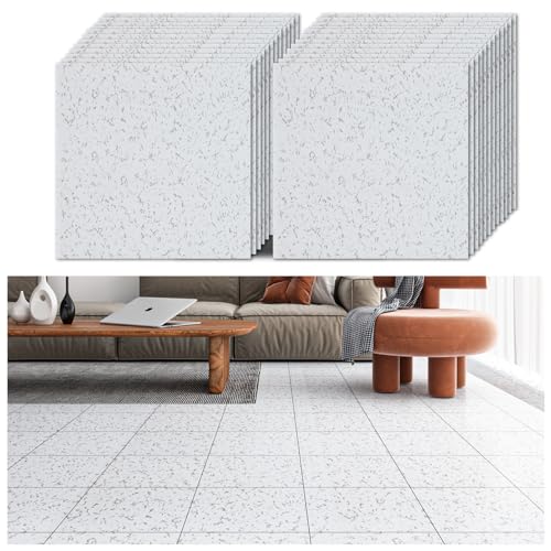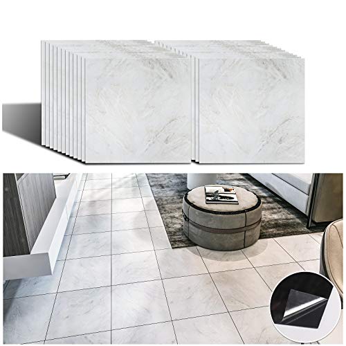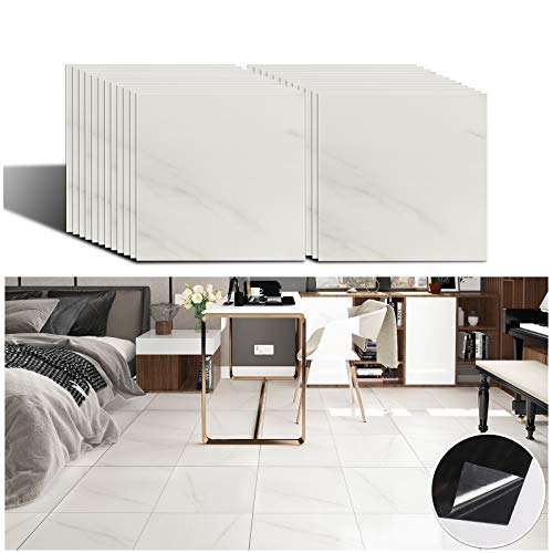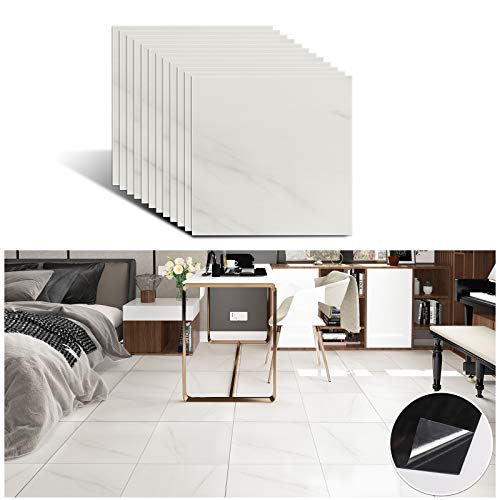 CYEER 40 stycken självhäftande vinylgolv, 30 x 30 cm, PVC-golvbeläggning självhäftande vattentät halkfri, självhäftande golvplattor för kök, vardagsrum, badrum (vit marmorerad)