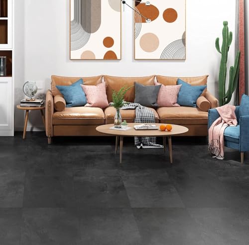 Livelynine PVC självhäftande golvplattor Antracitgrå Lino självhäftande golv Badrum Tvättbara självhäftande golvplattor 30x30 golv Sovrumsgolv PVC självhäftande Parkettgolv Vardagsrum Kök, 4 plattor