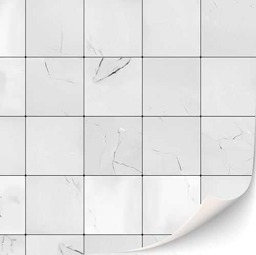 VEELIKE Golvplattor, golvdekaler, kakel, marmor, inte rak, vit, vinyl, väggplattor, kakeldekaler, kanter, kökskakel som klistras fast, självhäftande, 30 x 30 cm, 24 stycken
