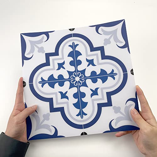 Alwayspon Vinylgolvplattor, klistermärke, vattentät, halkfri, stänkskydd, tjockare PVC vinyl golvplattor, självhäftande skala av och fäst, 30 x 30 cm/12 tum x 12 tum, blå portugisiska