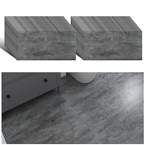 VEELIKE Självhäftande golvplattor betongutseende 24 stycken 60 cm x 30 cm PVC golvbeläggning självhäftande vinylgolv kakeloptik självhäftande kakel badrum golv kök vardagsrum kakeldekaler golv garage