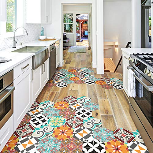 Klistermärke golv azulejos cementplattor med skyddande plastlaminat | självhäftande klistermärken sexkantiga golvplattor vattenavvisande golv - självhäftande golvplattor - 20 x 18 cm -10 styck