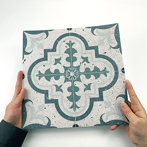 Alwayspon Vinylgolvplattor, klistermärke, vattentät, halkfri, stänkskydd, tjockare PVC vinyl golvplattor, självhäftande skala av och fäst, 30 x 30 cm/12 tum x 12 tum, cementgrön portugisiska