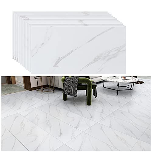 VEELIKE PVC-golv marmor vit 12 stycken 60 cm x 30 cm marmorutseende golvplattor självhäftande PVC golvbeläggning garage vinylgolv kakeloptik självhäftande kakel badrum golv vattentät golvbeläggning