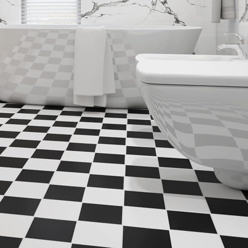 Livelynine 4 st 12 x 12 Checker Board Peel and Stick-golvplattor, badrum, svartvitt, kakelplattor för köksgolv, självhäftande golvplattor, vattentät, klibbig rutig vinylgolvrulle
