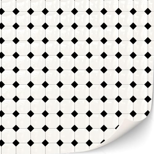 Yullpaper 12 stycken vinylgolv kakeloptik PVC golvbeläggning självhäftande kakeldekor svart och vit för kök badrum självhäftande kakel golv tvättbara golvplattor självhäftande 30 x 30 cm