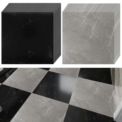 Livelynine självhäftande golvplattor 30X30cm 16 plattor PVC självhäftande golvplattor Grå Förtjockning Nötningsbeständig-Självhäftande Badrumsgolvplattor för kök Vardagsrum Marmorgolv