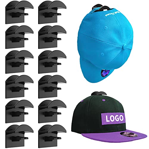Towviy 12 st självhäftande hattkrokar för väggmonterad, kepshängare hatt hängare hållare baseballkeps förvaring hatt ställning för vägg, svart, björnar 0,9 kg
