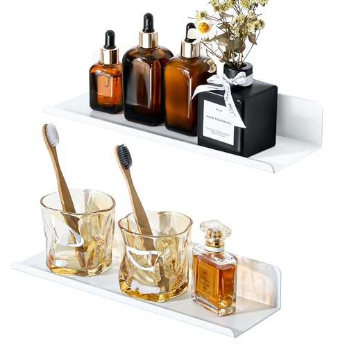 IETWATE 2 stycken vägghyllor badrum utan borrning, 30 cm badrumshylla vägg, akryl svävande hylla, självhäftande hyllor för väggar dekoration och för vardagsrum sovrum kök matsal (vit)