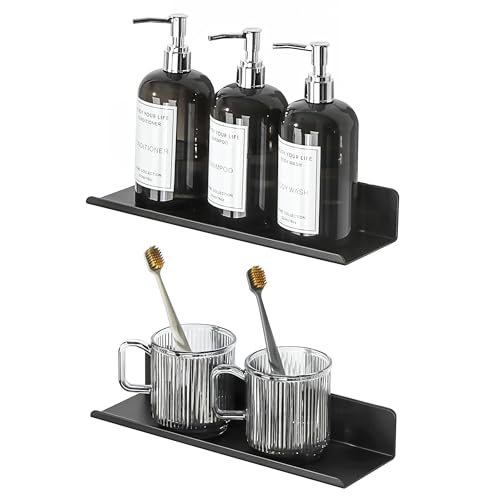 SAYAYO Självhäftande hylla, Set med 2, vägghylla svart utan borrning, flytande hylla vägg för badrum, kök, vardagsrum, sovrum, 30 cm, EGXZ24300-3M-B-2P