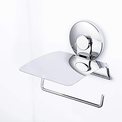 HomeHeng Toalettpappersrullehållare med hylla, SUS304 rostfritt stål polerad krom modern rulle näsdukshållare, självhäftande och väggmonterad, badrum kökstillbehör F928-03B