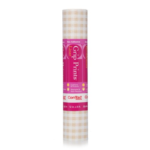 Con-Tact märkesgrepp tryck hållbar självhäftande halkfri hylla och lådfoder, 30 cm x 12 cm, kaki pläd