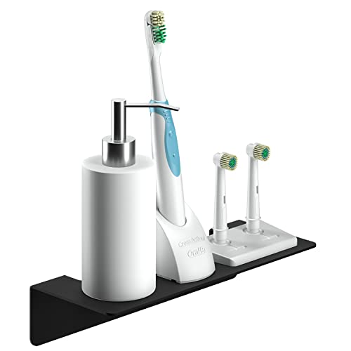 WEISSENSTEIN Självhäftande väggplatta i rostfritt stål svart 24 cm – badrum – stor självhäftande hylla – utan hål eller borrning