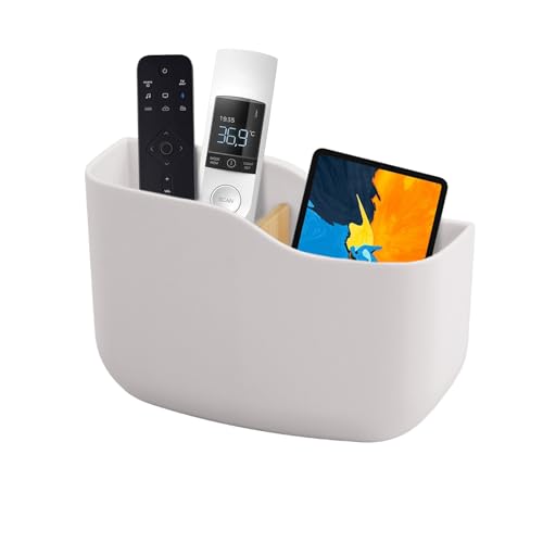 Väggdörr för fjärrkontroll, förvaringslåda för fjärrkontroll, 2 galler, hylla, självhäftande TV-fjärrkontroller, vägglådor för mobiltelefon, väggförvaring, vit