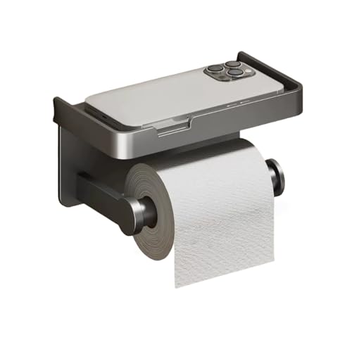 Toalettpappershållare med hylla, självhäftande toalettstativ, badrum toalettpappershållare väggmontering (den grå)