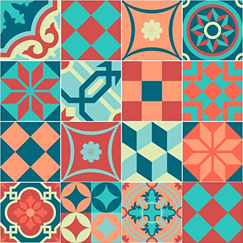 16 självhäftande klistermärken för kakel | klistermärke cementplattor - mosaikplattor badrum och kök | cementplattor väggplattor - azulejos - 10 x 10 cm - 16 stycken