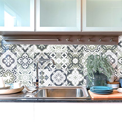 (24 stycken) klistermärken kakel självhäftande 15 x 15 cm - klistermärke cementplattor - väggdekoration klistermärken för badrum och kök - cementplattor väggklistermärken
