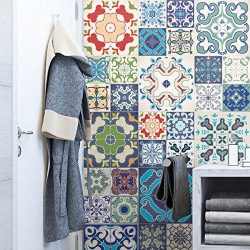 Ambiance-Live col-RV-0518_15x15 cm självhäftande klistermärken kakel, flerfärgad, 15 x 15 cm, set med 24 stycken