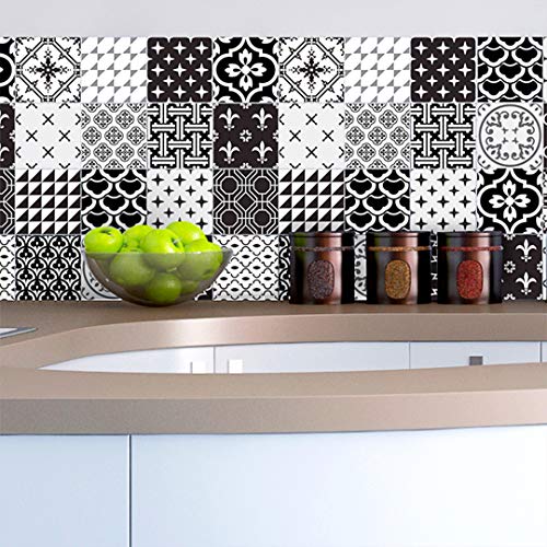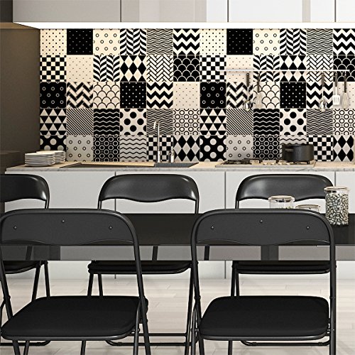 Ambiance-Live col-tiles-ROS-A829_15x15 cm självhäftande klistermärken kakel, vinyl, svart och vit nyans, modern 15 x 15 cm Väggdekor