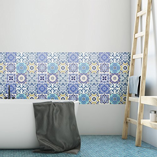 Ambiance-Live 24 klistermärken kakel | klistermärken självhäftande kakel – mosaik kakel väggtatuering badrum och kök | kakel lim – portugisiska – 10 x 10 cm – 24 delar