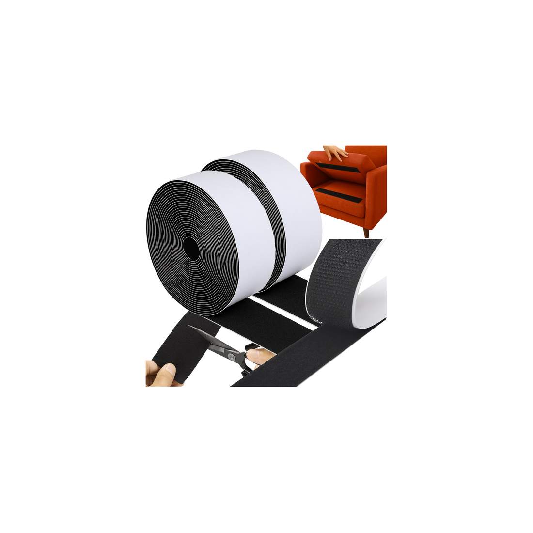 Kardborreband VEL-EC60211 varumärke kan skäras till, starkt, kardborreband, perfekt för rumsdekoration, hemtillbehör, garage | svart | 20 mm x 1 m självhäftande kardborreband
