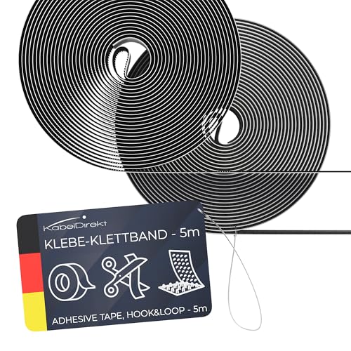 KabelDirekt – Självhäftande kardborreband – 20mm × 5m – (kardborreband, svart) –