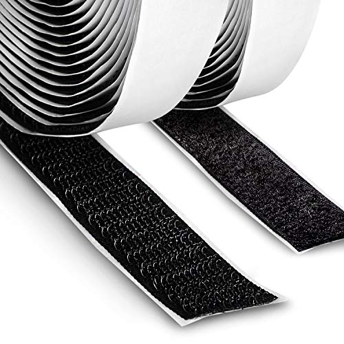Vicloon Självhäftande kardborreband med krokar och öglor av nylon, 500 cm x 20 mm, set med tejp med klister på baksidan (svart)