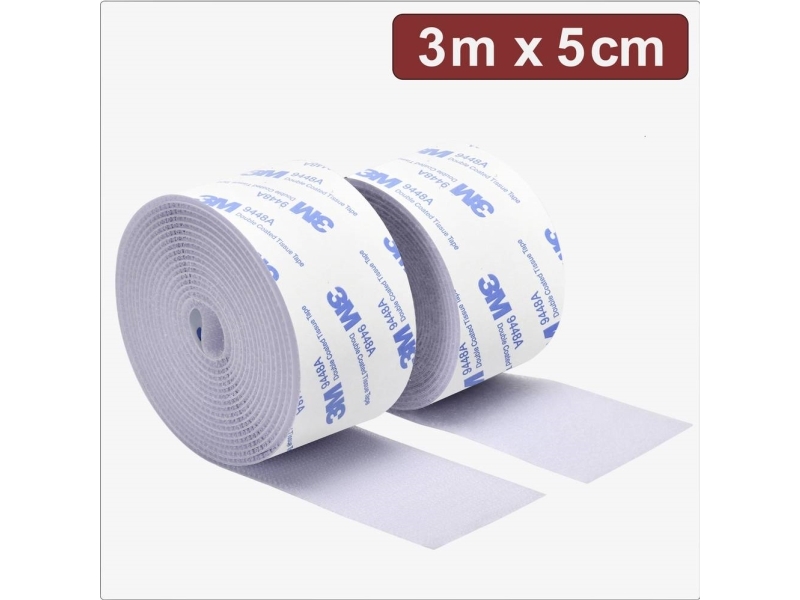 Självhäftande kardborreband 5m x 5cm – Vit, enkel installation