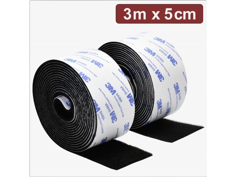 Självhäftande kardborreband, 5m x 5cm, svart
