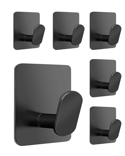 SEBSON Självhäftande handdukshållare set om 6 – självhäftande krokar i rostfritt stål, handdukskrokar för badrum, kök, garderob – väggkrok 60 x 18 x 33 mm svart