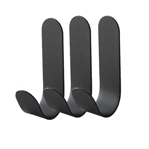 Kisstta 3 stycken självhäftande krokar, självhäftande krokar svart av rostfritt stål, starka självhäftande krokar, ingen hålborrning krävs, med självhäftande dyna, lämplig för vägg, badrum, kök, dörr