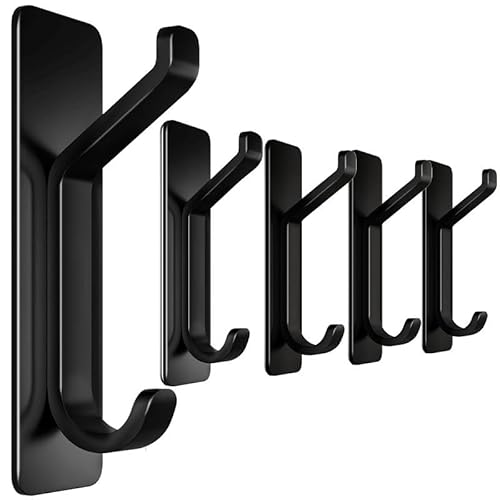 Alyvisun 5 Stycken Självhäftande Krokar, Starka Handdukskrokar Badrum i Rostfritt Stål, Väggkrokar Självhäftande Utan Borrning, Multifunktionella Handdukshållare för Badrum och Kök (Svart)
