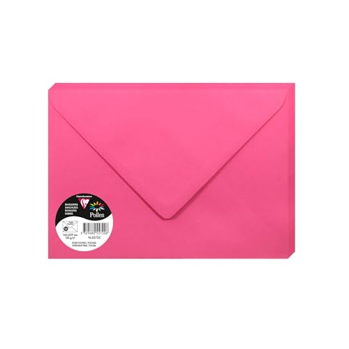 Clairefontaine – Ref 5571C – Pollen, självhäftande kuvert (paket med 20) – 90 x 140 mm storlek, 120 gsm papper, skrivarkompatibel, syrafri, självhäftande remsa för enkel tätning – intensivt rosa
