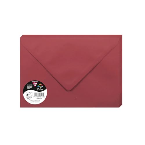 Clairefontaine – Ref 5881C – Pollen, självhäftande kuvert (paket med 20) – 90 x 140 mm storlek, 120 gsm papper, skrivarkompatibel, syrafri, självhäftande remsa för enkel tätning – rödbrun