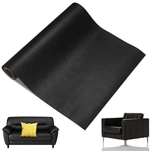Arespark Självhäftande konstläder, 150 x 40 cm svart självhäftande läderlapp, självhäftande reparationslapp i läder för soffor, väskor, jackor, möbler. (svart)
