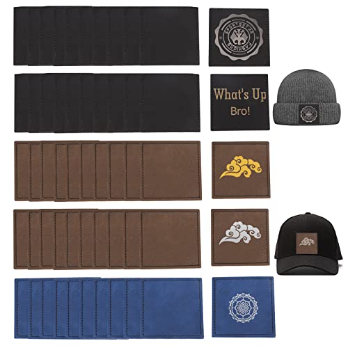 50 st lasergraverade fyrkantiga lappar i konstläder, 6,5 cm x 6,5 cm självhäftande 3 m lim läderlapp, hatt kläder väska lappdekoration, för atomstack/skulpfun