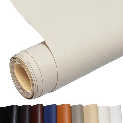 YAFLC Konstläder självhäftande läder, 10x160cm läderlapp självhäftande, läderreparationslapp set för soffa, jackor, bilstolar, möbler, kläder Mjölkvit