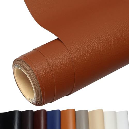 YAFLC Konstläder självhäftande läder, 10x160cm läderlapp självhäftande, läderreparationslapp set för soffa, jackor, bilstolar, möbler, kläder Lätt brun