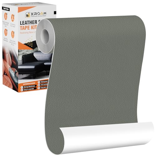 Xroam konstläder självhäftande, 12 x 160 cm ljusgrå läder reparationslapp, läderlappar självhäftande, konstläder reparationssats, läderlapp självhäftande för soffa, bilstolar, väskor, jackor