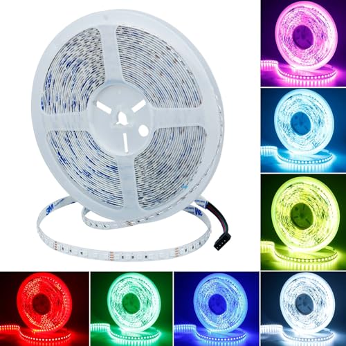 Nord LED-slinga, 5 m, RGB, varmvit, 24 V, dimbar, självhäftande – professionell LED-remsa, dimbar, RGBWW 16 miljoner färger, LED-band, indirekt belysning, 60 lysdioder per meter, RGB LED-slinga