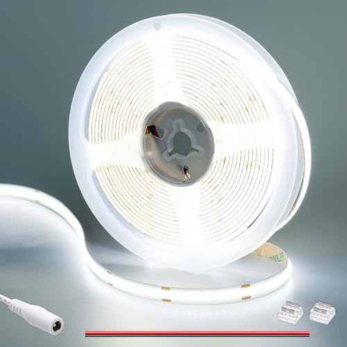 GOMING 24V 5M COB LED Remsa Kallt Vitt 6000K LED Strip 4500LM 480LEDs/M CRI 93+ IP20 Ej Vattentät Flexibel Självhäftande LED Tejp Lämplig för Heminredning(Strömförsörjning Ingår Ej)